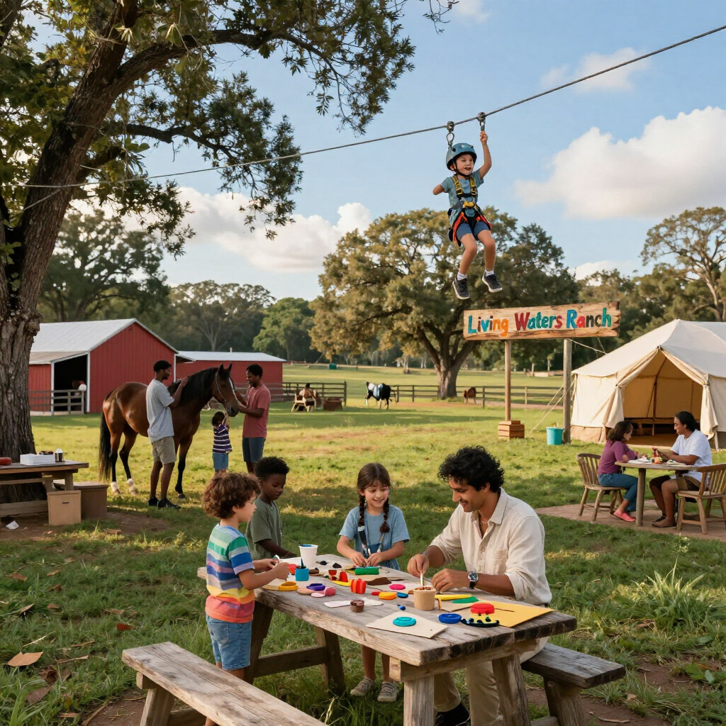 At Living Waters Ranch, we offer a variety of engaging outdoor activities designed to foster community and connection. From zip lines and giant slides to pony rides and archery, our programs are tailored for all ages, ensuring everyone can enjoy the beauty of nature while learning valuable skills.